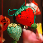 ひな祭りに、娘の成長を祈って、桃やうさぎなどの可愛らしい飾りがひな段の両脇につるされます。